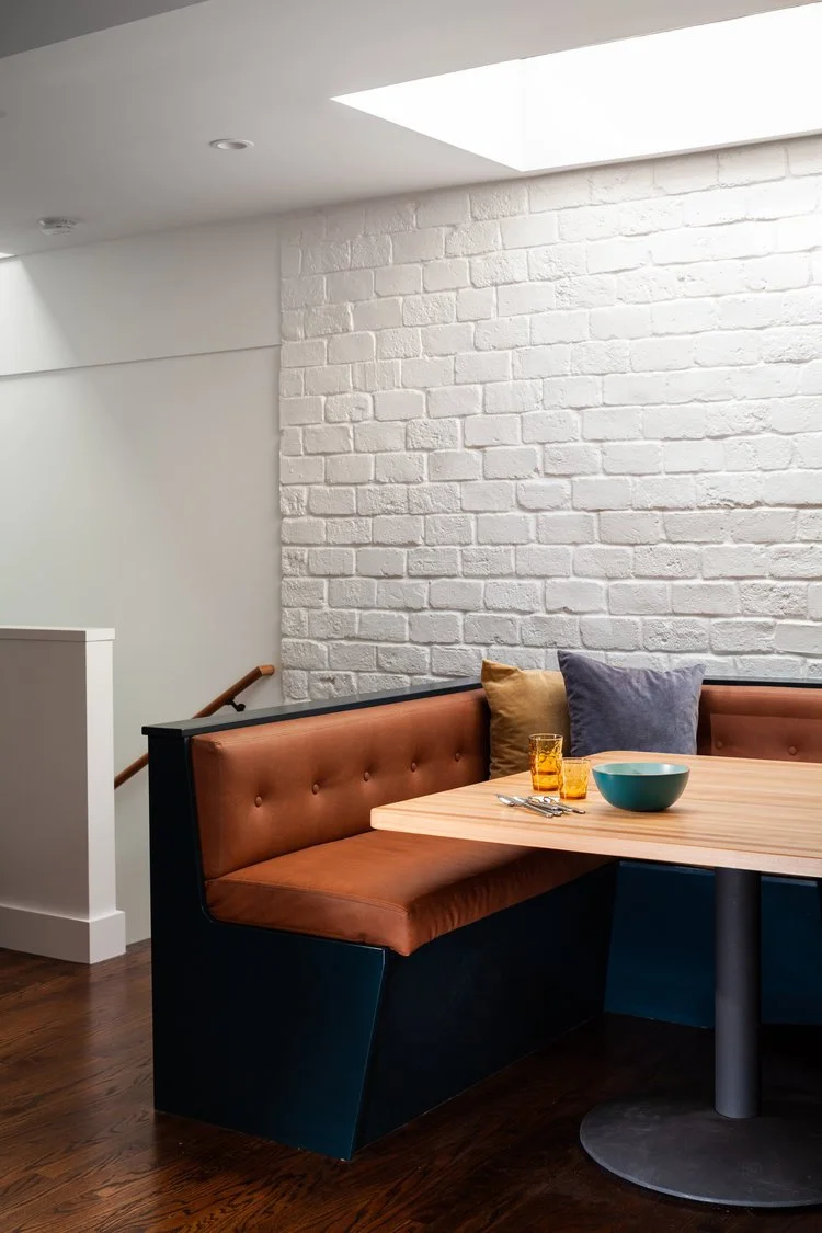 Craig and JT kept a midcentury modern feel by adding a retro banquette in the kitchen. Photo: Helynn Ospina.