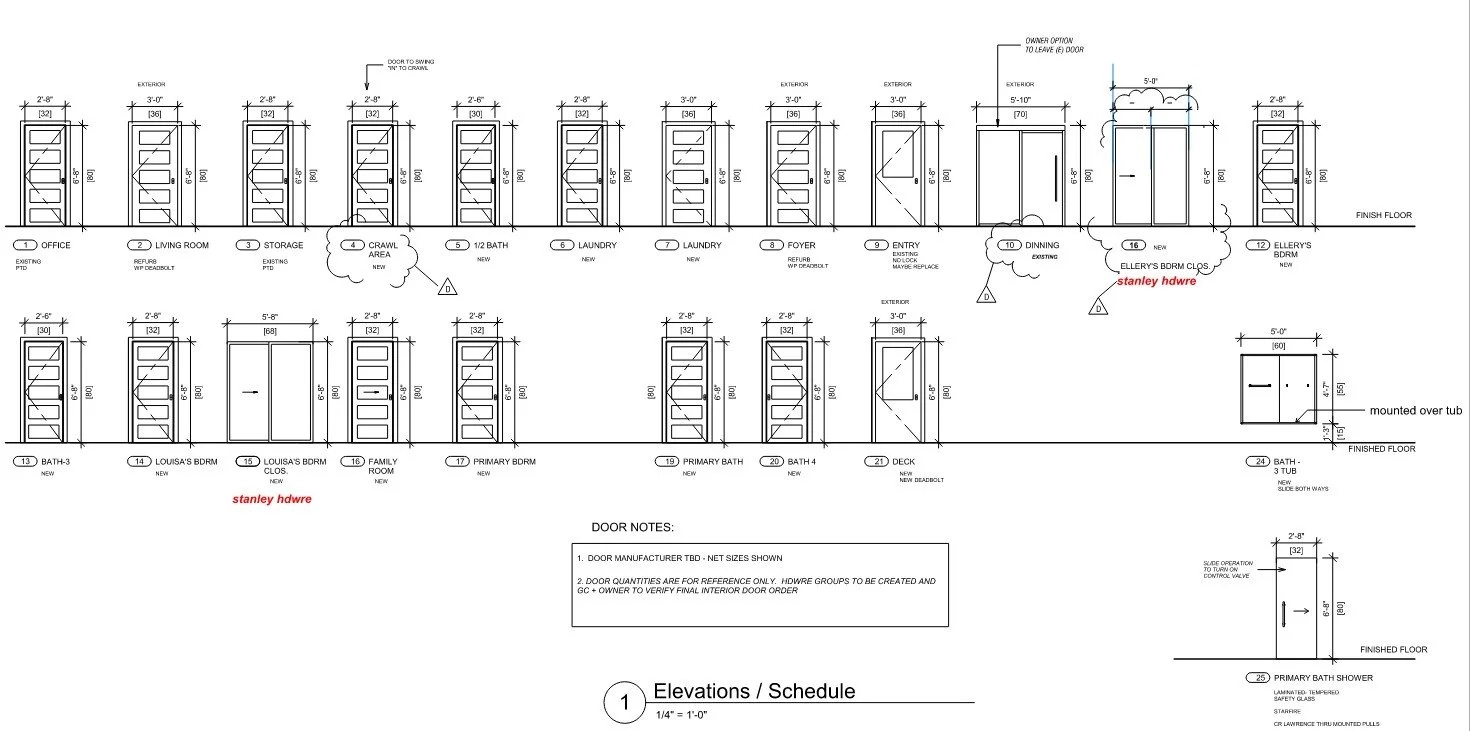 In Design Development, the COA team creates a door schedule to show where every new door will go and what type it will be. This information is invaluable in the pricing process.
